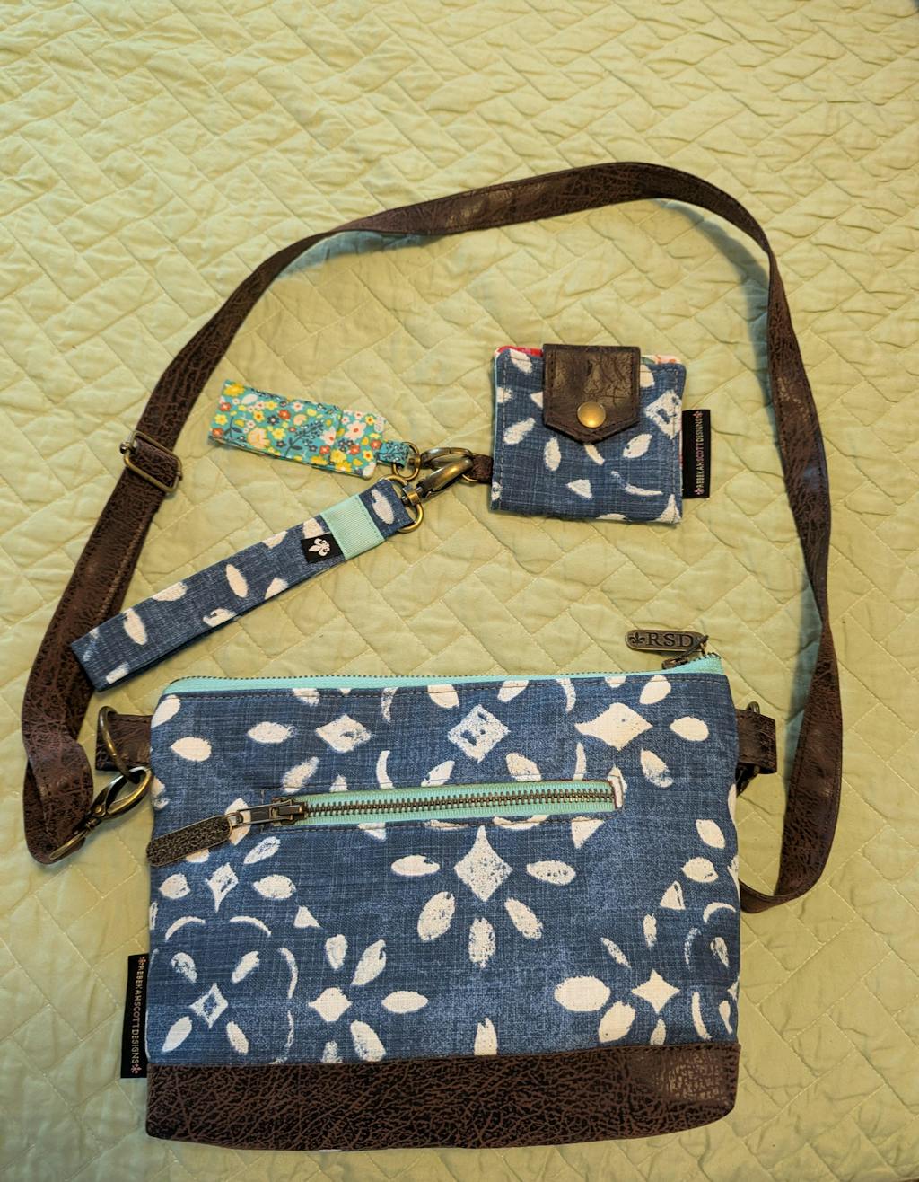 PAMELA MILLER She's beautiful! My favorite colors of navy blue and yellow! She is so quick and convenient to throw over my shoulder and not have to fumble with hanging on to a bag. She is lightweight and the fabric makes me happy!
