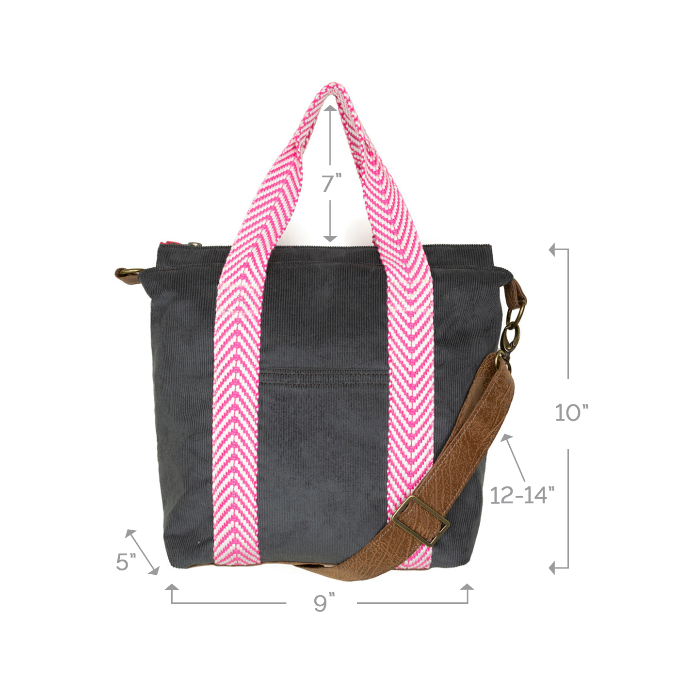 - Top zippered closure